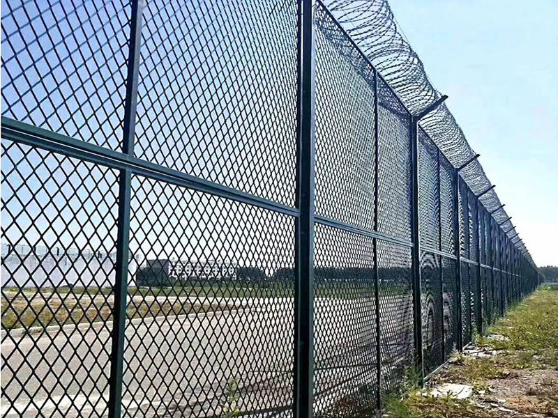機(jī)場(chǎng)護(hù)欄網(wǎng)又稱作“Y型安全防御護(hù)網(wǎng)”,由Y型支架立拄,加強(qiáng)型焊接網(wǎng),安全防盜連接件和熱鍍鋅刀片刺網(wǎng)組成,是強(qiáng)度和安全防御性級(jí)別很高的圍界護(hù)欄網(wǎng)產(chǎn)品。被廣泛應(yīng)用在機(jī)場(chǎng)、軍事基地等高安全場(chǎng)所。機(jī)場(chǎng)護(hù)欄網(wǎng)的突出特點(diǎn)就是美觀實(shí)用、安全性高、防攀爬能力好,網(wǎng)體連接方式采用特制SBS緊扣件,有效防止人為的破壞性拆卸,橫向四道折彎加強(qiáng)筋,使網(wǎng)面強(qiáng)度顯著增加。